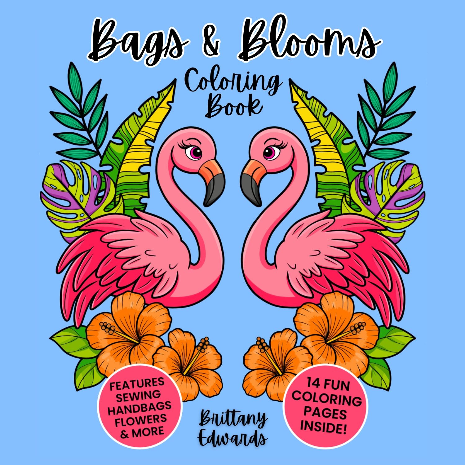 This product listing is for a digital E-book copy of Bags & Blooms, the purchase will include a PDF for at home printing and a ZIP file containing PNG files for digital coloring.
