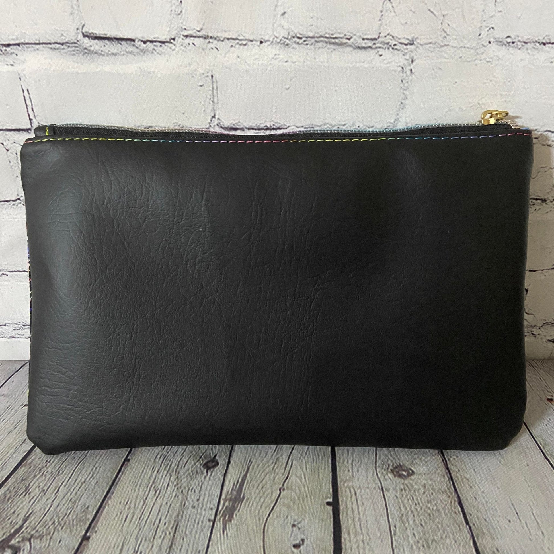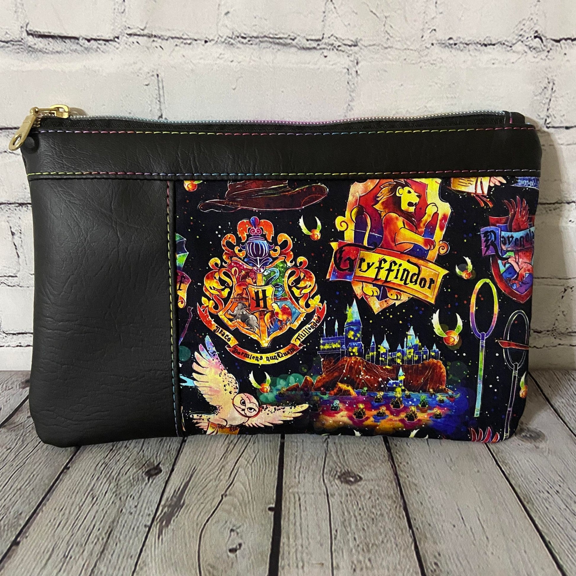 For my HP fans! This clutch is perfect for quick on the go trips or as a cosmetic bag. Features a rainbow HP Print paired with a contrasting rainbow thread. Lined with waterproof canvas.