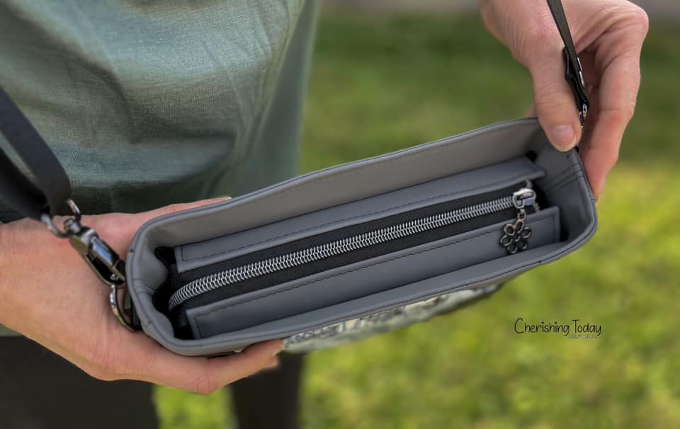 Crossbody: 8.5”T x 10.5”W x 2.5”D